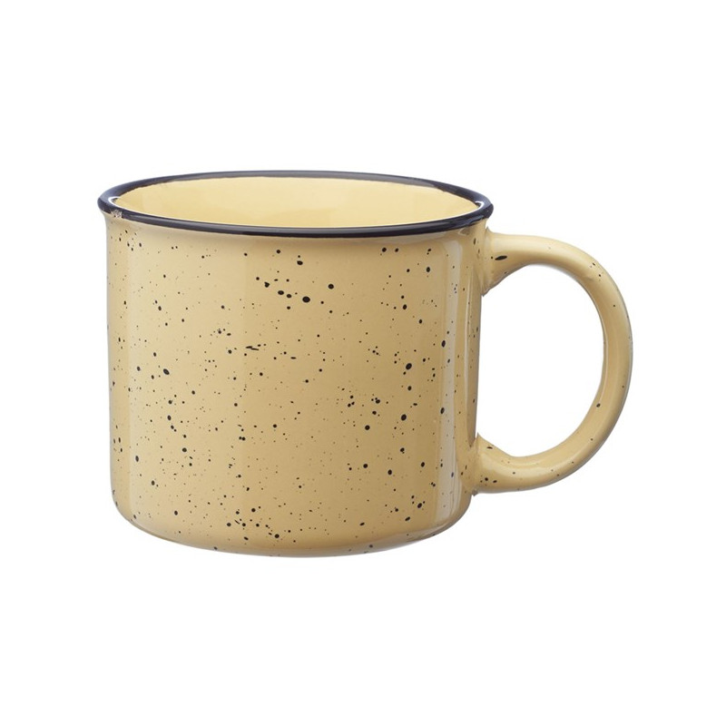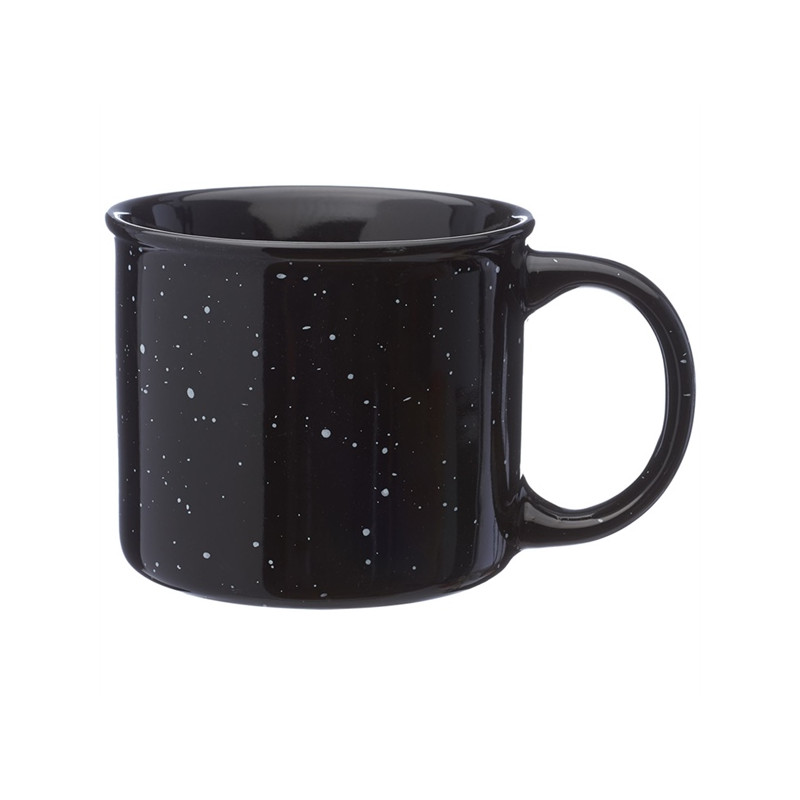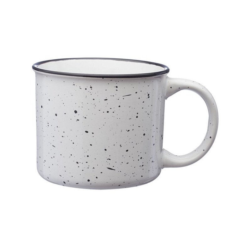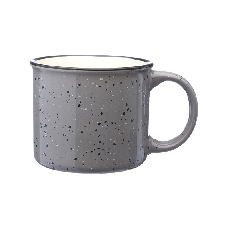 Classic tin cup style with a speckled ceramic finish