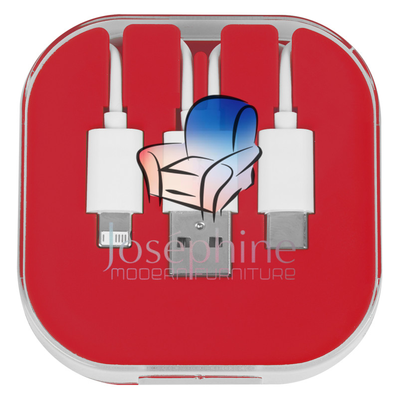 A compact travel case with built-in charging cables and a slide-out phone stand—customizable with your logo for the perfect branded giveaway.